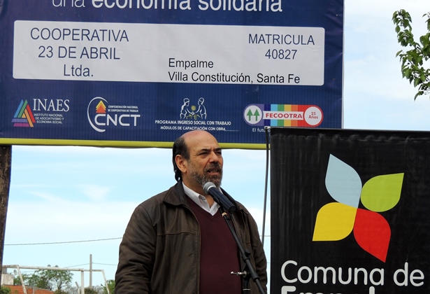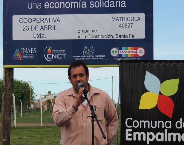 El pasado viernes 26 de septiembre se realizó en la localidad de Empalme Villa Constitución el acto de inauguración de las obras realizadas por la Cooperativa de Trabajo "23 de Abril", en el marco del Programa de Ingreso Social con Trabajo - Capacitación con Obra". El acto contó con la presencia de autoridades locales y referentes del movimiento, entre ellos el Presidente de FECOOTRA, Cristian Horton; el Presidente de la Comuna, Raúl H. Ballejos; el titular de la CONAMI, Alberto Gandulfo y el Vocal del INAES y Presidente de CICOPA Mercosur, José Orbaiceta.